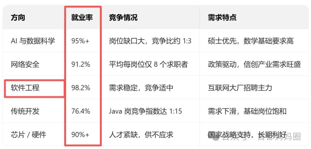 计算机类专业整体就业率高于全国平均水平,2024 届本科整体就业率68.65%-88.2%(不同数据源有差异),高于全国本科平均近 2 个百分点。