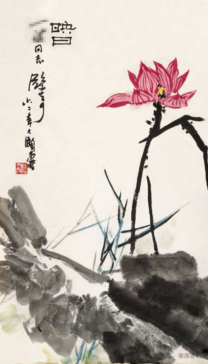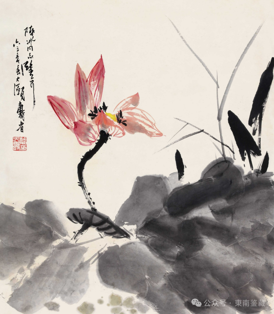 潘天寿 1963年作 红荷 立轴