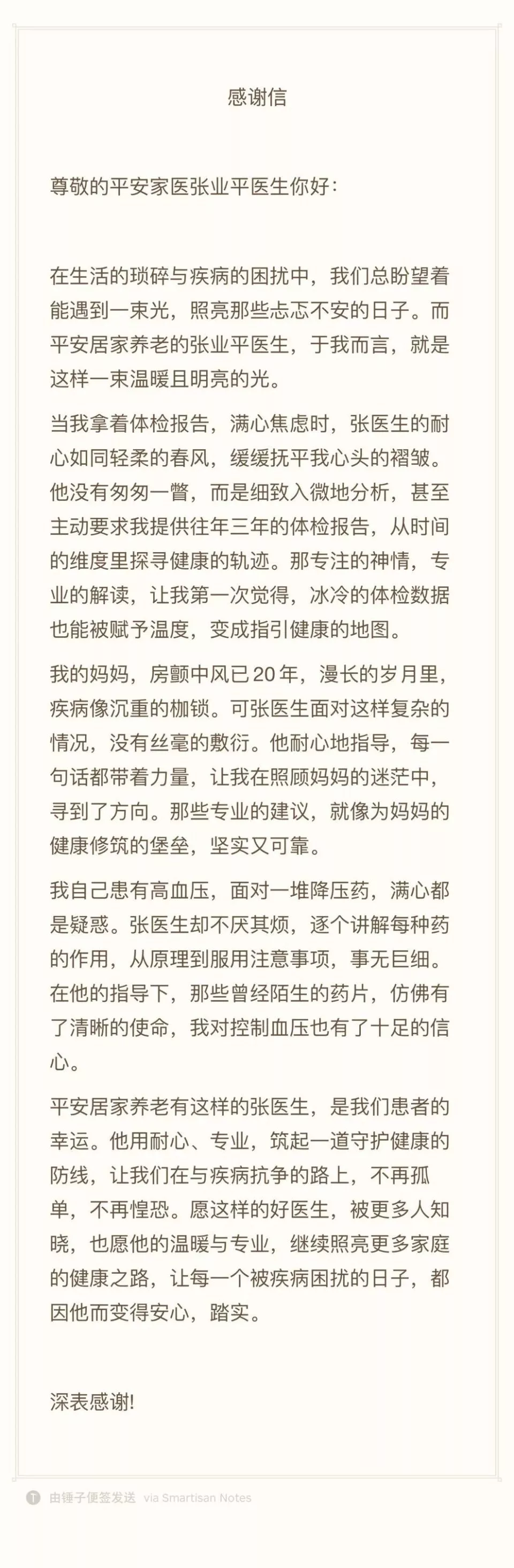 ▲母亲脱离危险后,季薇发来了感谢信。图 / 讲述者提供