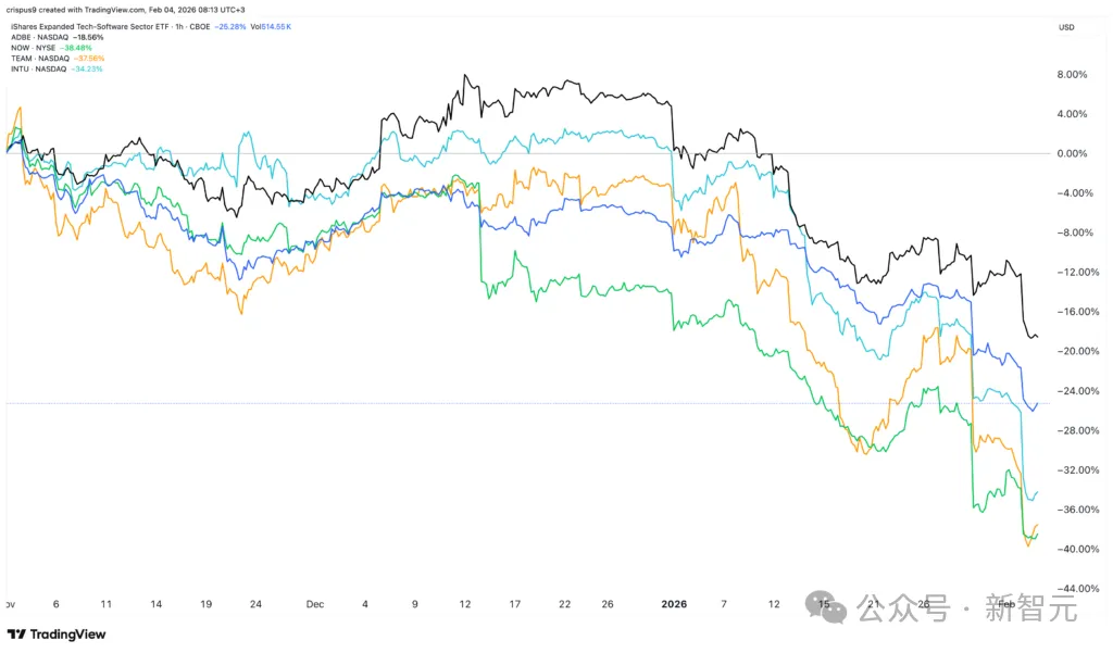 印度IT巨头(如Infosys、TCS)单日跌幅超过7%;SaaS软件指数单周重挫,累计蒸发3000亿美元。