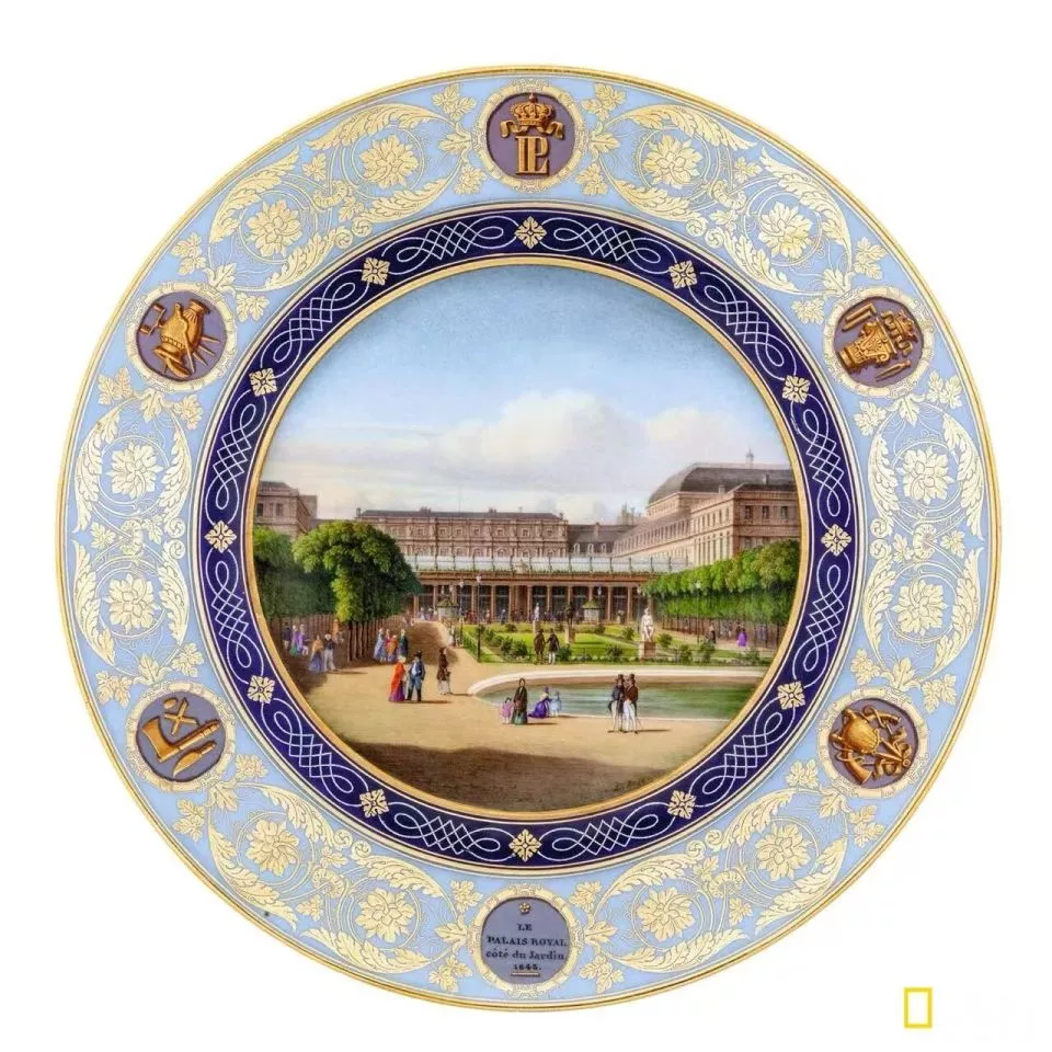 描绘枫丹白露宫(Château de Fontainebleau)的塞夫勒瓷盘。|国家地理中文网