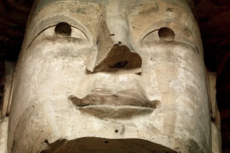 云冈第19窟佛像,双目眼球都已脱落。本文图/赵昆雨供图