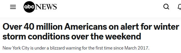 截至周六上午,全美已有超过4000万人进入冬季风暴警戒状态。除三州地区外,从特拉华州沿海地区到新英格兰南部沿海地区,均已发布沿海洪水监测预警,预计在高潮位期间可能出现轻度至中度沿海洪水。