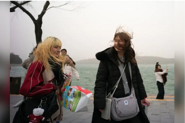 北京全市处于大风黄色预警和沙尘蓝色预警中,大风区持续东移影响全市大部地区。