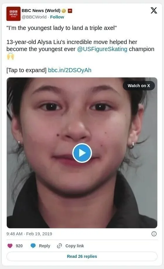 在2026年米兰科尔蒂纳冬奥会 花样滑冰女子单人滑决赛中,20岁的美国选手刘美贤(Alysa Liu)以轻松自信的表现夺得金牌,为美国赢得24年来首枚冬奥会花滑女单金牌。