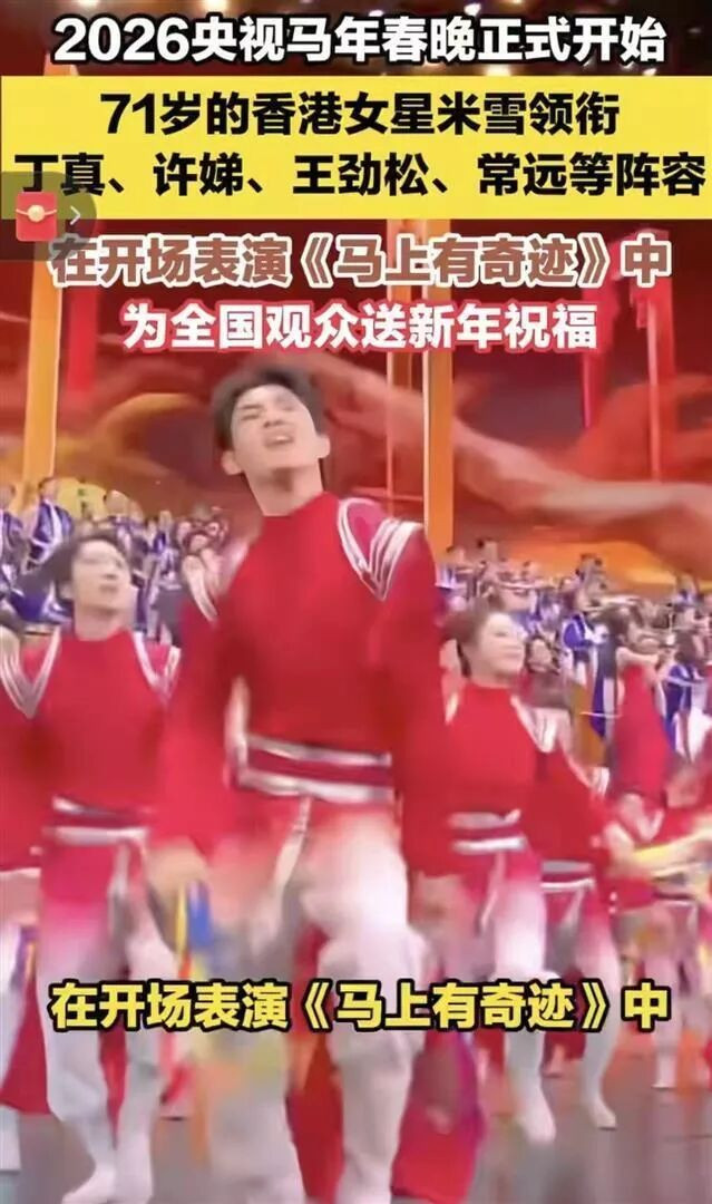 2026年除夕夜,央视春晚开场歌舞《马上有奇迹》的音乐一响,镜头扫过一张熟悉又陌生的脸。