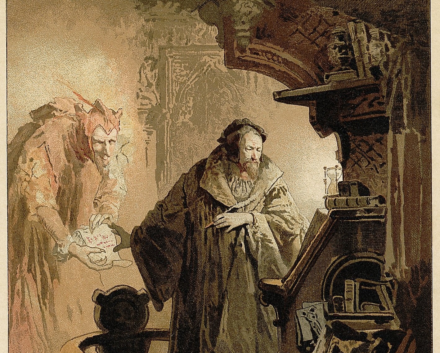 在 上一回 的结尾,魔鬼梅菲斯特(Mephistopheles)跟浮士德(Faust)立约,“我在世间为你效力,让你体会到人间至乐。但你(死后)灵魂归我。“