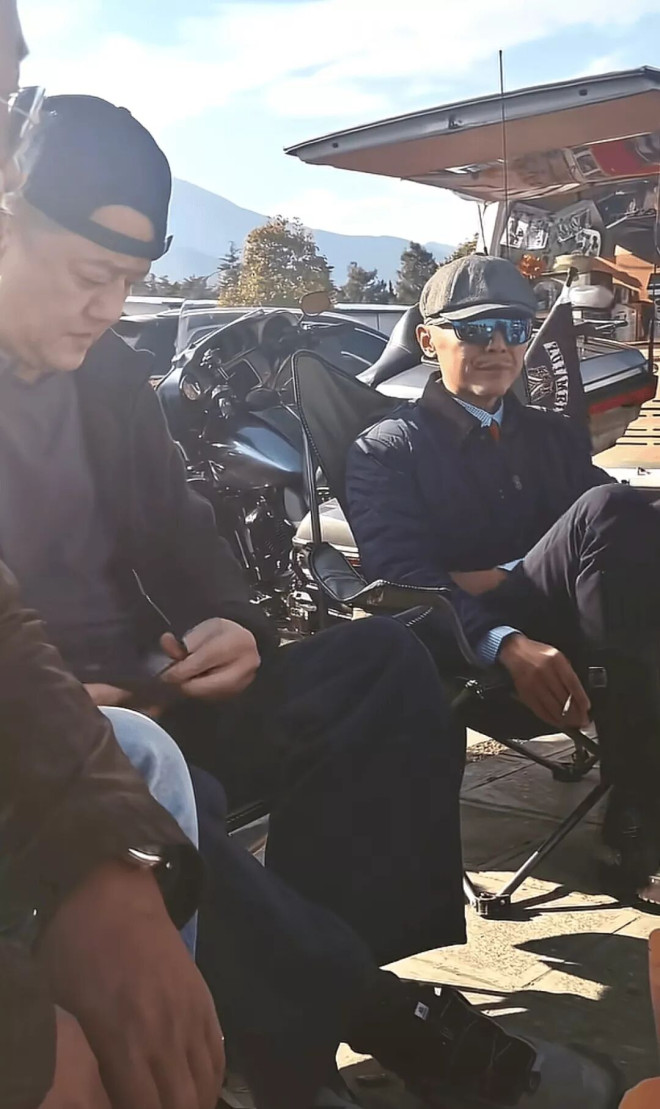 此次聚会也像是一场自由骑行的聚集,背景中停放着多辆摩托车,彰显出这群人对自由和独立生活的追求。李亚鹏身着休闲,偶尔抽起烟来,动作娴熟,显示出他多年的烟龄。作为一个曾经的演员、现如今的企业家兼慈善人士,他肩上的责任并不少,常年应对的压力显而易见。生活的起伏刻画了他的面庞,岁月的痕迹逐渐显现,不过他身边依然有理解和支持的朋友。