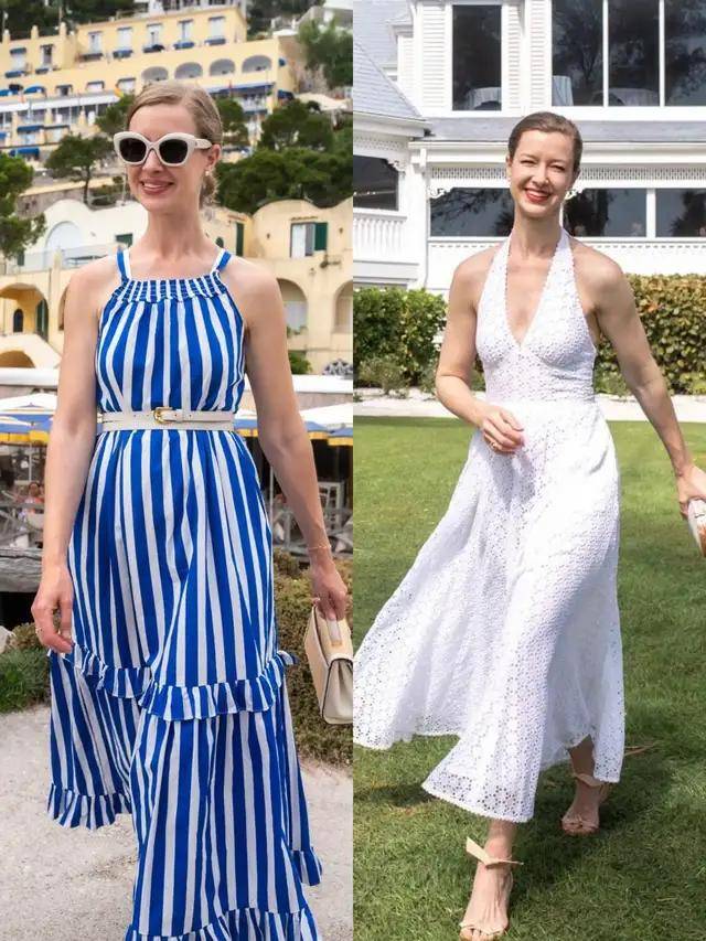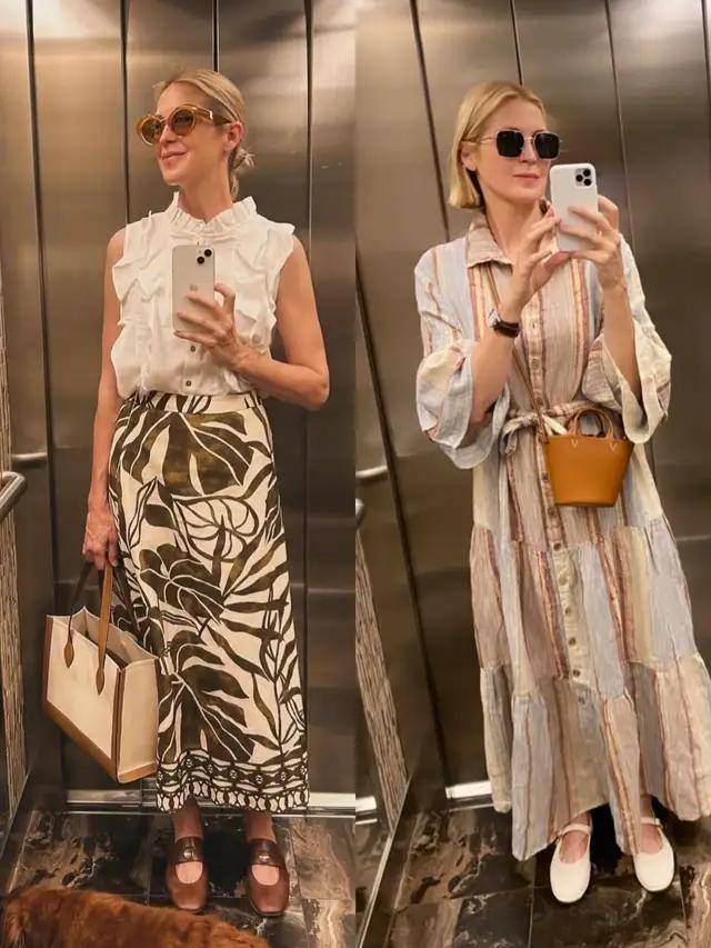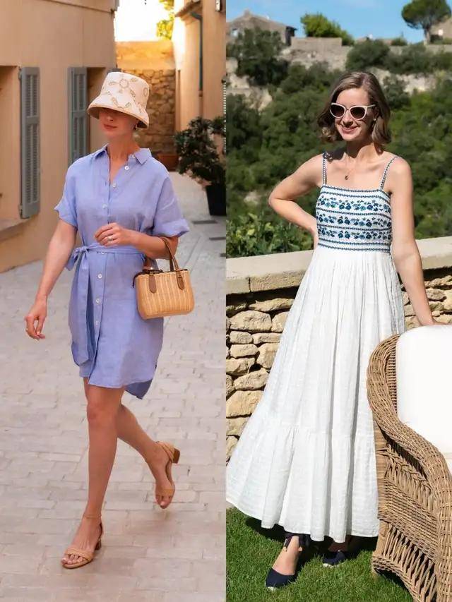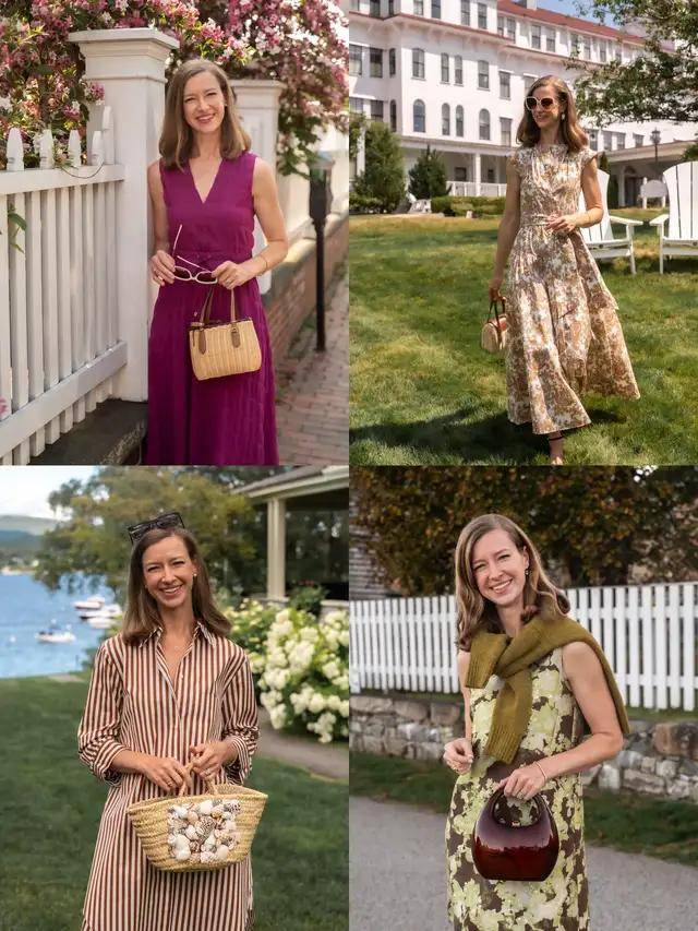 一些连衣裙便可以成全整套穿衣造型,选择一件紫色的 V 领无袖连衣裙,温婉雅致。换成一条碎花连衣裙则自带浪漫气息。当你再穿上一条条纹的衬衫连衣裙,优雅大方。