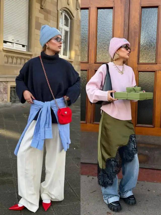 我们也可以像时尚达人一样,再配上一件温柔的针织衫或是干净利落的小众白色衬衫,一柔一简,便兼具了温暖与干练。