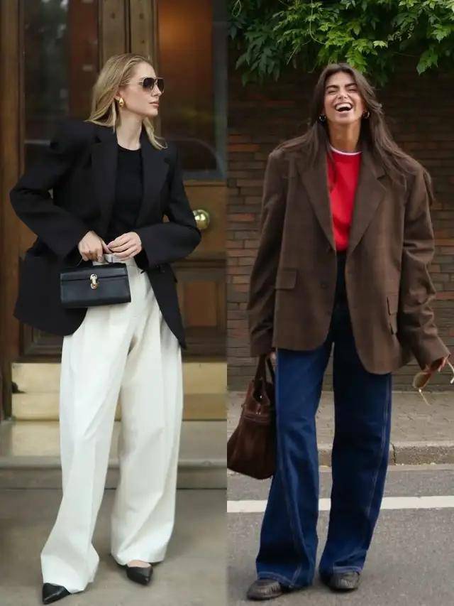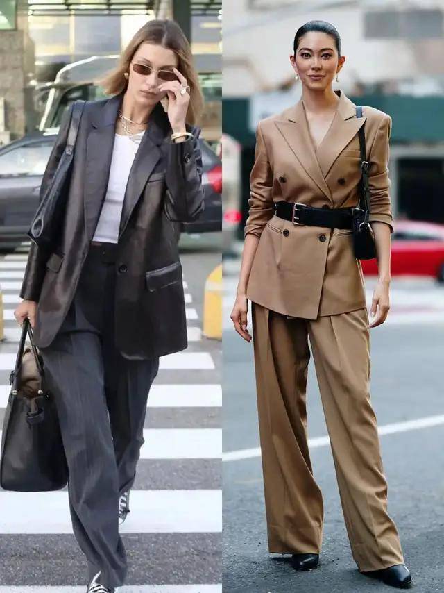 想要利落又高贵,一定要记住裤脚不能太长,例如上面这一条白色的西装阔腿裤,上身之后就拖沓邋遢。