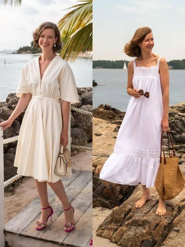 春季我们完全可以穿上一条纯白色的连衣裙去南方城市旅行,比如像海南,天气就很暖和,穿上吊带连衣裙或者是短袖连衣裙,脚踩一双高跟鞋,清爽又时尚