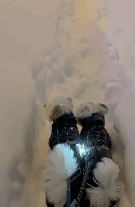 不过,并不是所有狗都爱雪。Reddit上还有一段视频显示,一位主人带着两只小型犬出门,结果两只狗几乎被铲雪车推到路边的人行道积雪埋住,看起来相当崩溃。