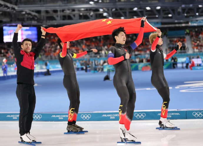 速度滑冰男子团体追逐的比赛中,刘瀚彬、吴宇、宁忠岩、李文淏组成的中国队获得季军,这是中国体育代表团首次获得该项目冬奥会奖牌。