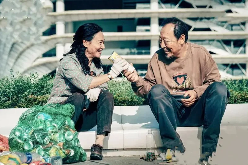 电影《我爱你》中倪大红与惠英红饰演的老人在公园谈心