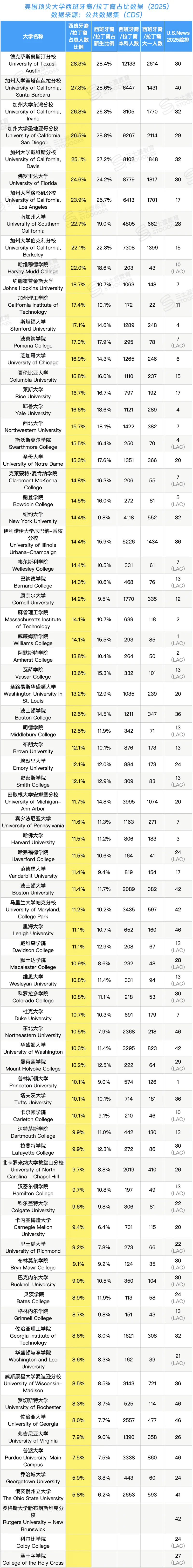 查看美国大学西班牙裔/拉丁裔占比数据