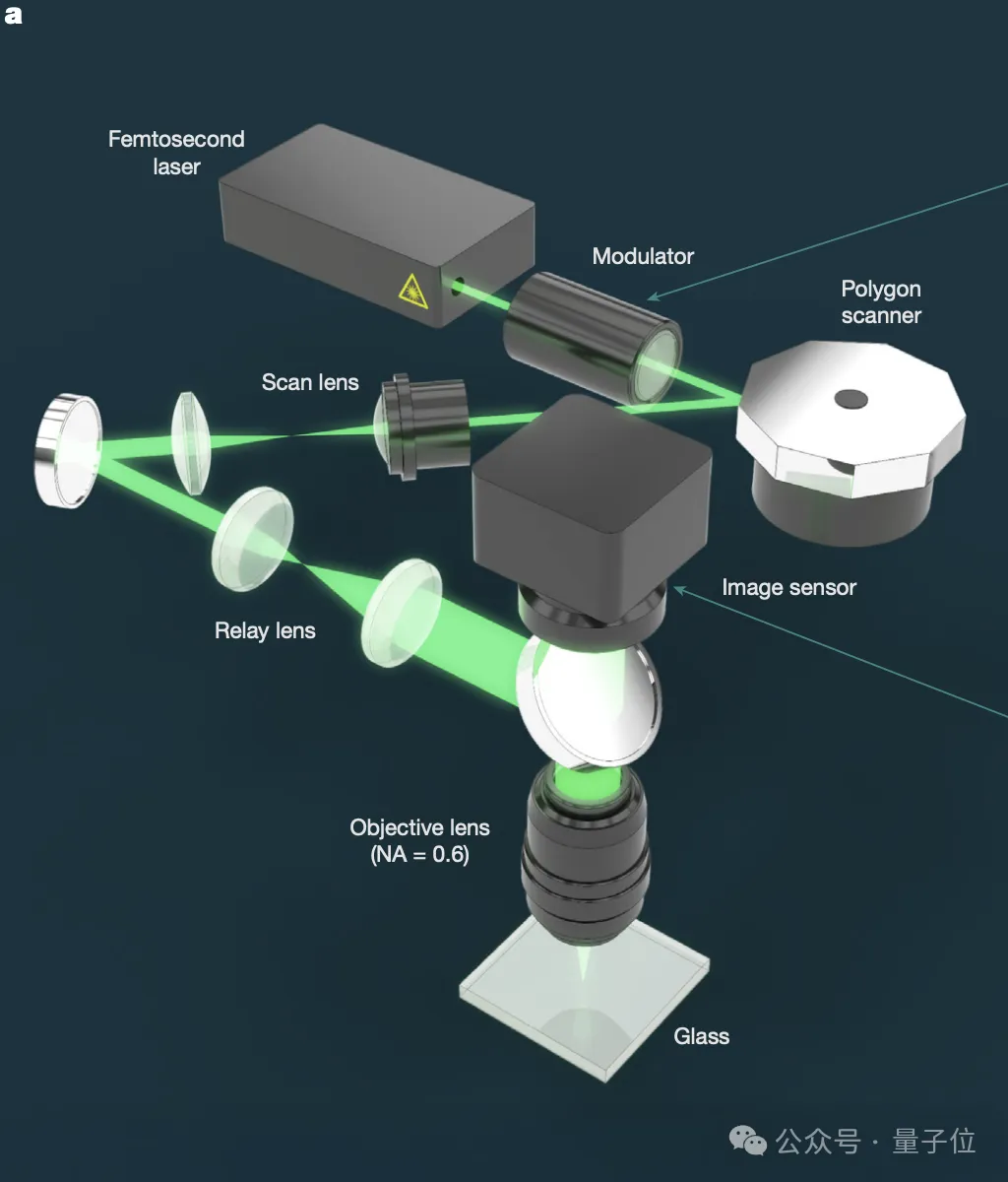 这种方式更简单粗暴:通过调节激光脉冲的能量强弱来改变玻璃局部的折射率,能量不同,折射率变化不同,对应不同的数据符号。