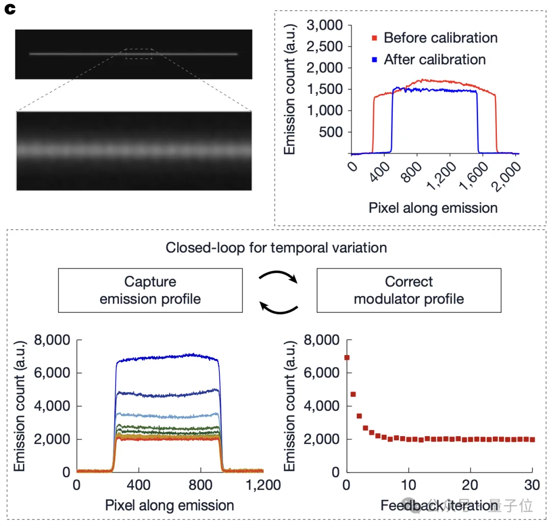 第一层是离线标定(Offline Flattening)。写数据之前,先把整个光路里的各种不均匀性(比如扫描器不同面的反射率差异、物镜在不同深度的表现差异)全部测一遍,算出补偿参数存起来,写数据时自动叠加补偿。