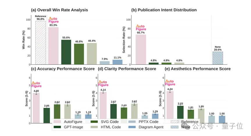 更具说服力的是人类专家盲测:10位论文一作对生成的图片进行评审,结果显示66.7%的专家认为AutoFigure生成的图已经达到了Camera-ready(出版级)标准。