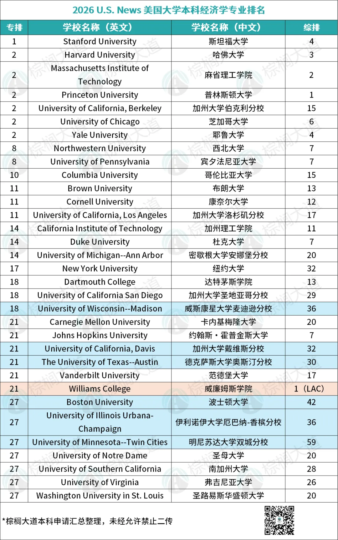 2026 U.S.News美本经济学排名