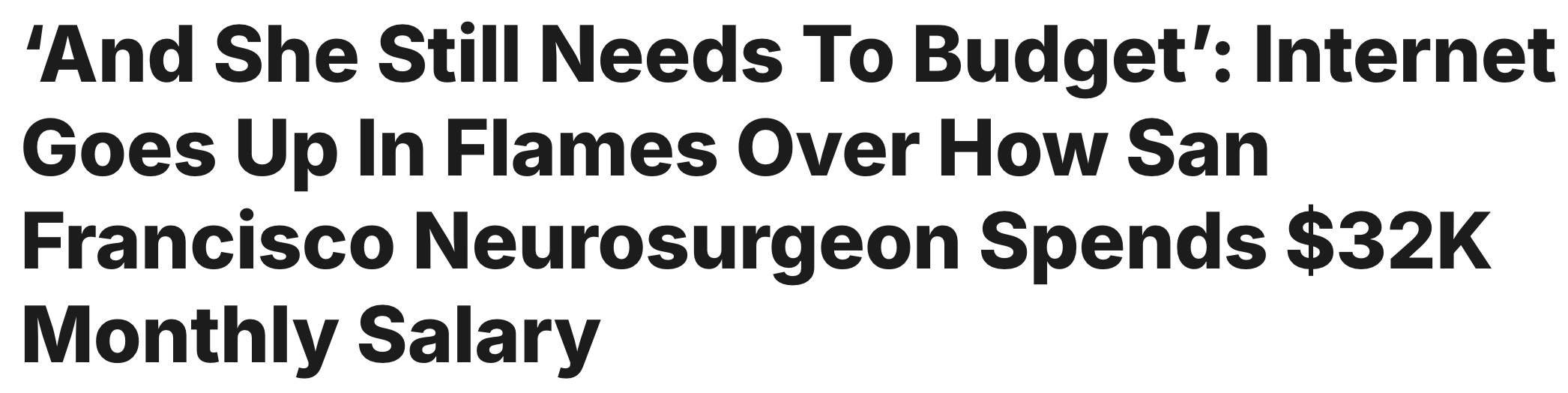 据2月21日报道,在不少人印象中,神经外科医生通常意味着“高薪”“体面”,财务压力似乎离他们很远。然而,最近一名旧金山神经外科医生晒出的月度预算账单,却在社交媒体上引发了激烈争论:在税后月入3.2万美元(约23万人民币)的情况下,她依然要精打细算、逐项分配,还在视频中坦言,“几年前这笔钱管理起来仍然让人很不知所措”。