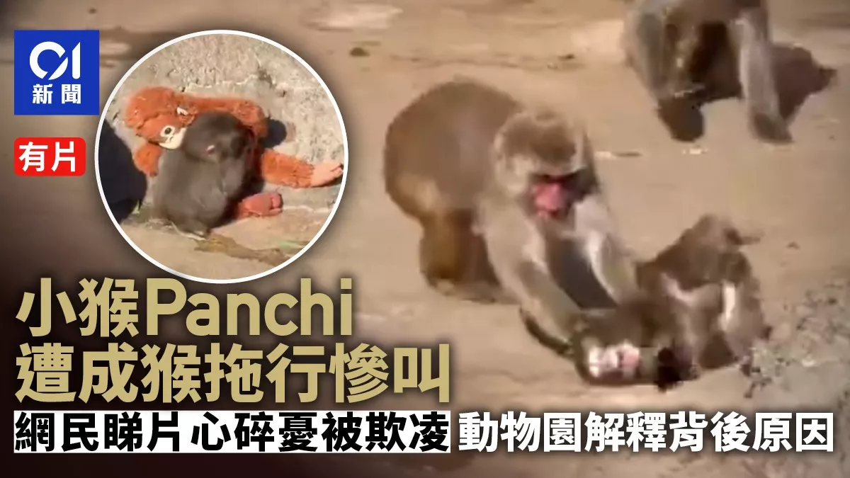 牠吓得发出尖叫,随后迅速逃离猴群、紧抱玩偶,仿佛在寻求慰藉。影片曝光后,不少网友心疼留言:「Panchi是不是被霸凌了?」、「动物的世界果然很残酷」。