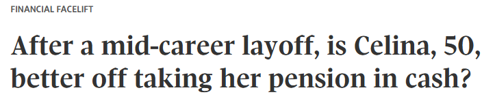 问题:能否在现有资产下舒适退休?Celina是否应推迟养老金,还是一次性领取并投资?