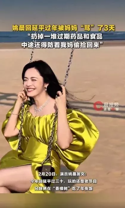 事件源于姚晨回福建延平老家过年。她在2月20日的微博中自述,除了带小孩、陪家人,还"给家里做了大扫除,扔掉一堆过期药品和食品 "。然而,这一出于健康考量的举动,却遭到了母亲的强烈反对。节俭惯了的母亲不仅连续三天责骂她,甚至试图偷偷捡回被丢弃的物品,迫使姚晨在清理过程中不得不时刻 " 防偷捡 "。她最终以幽默口吻自嘲收场:" 虽然被她连骂三天,我也算尽孝了。"