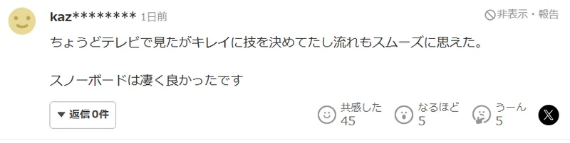 而这一次的冬奥会上,当他再度夺得金牌的那一瞬间,更是在日本掀起了热烈讨论。尤其是他与日本教练佐藤康弘在雪场上的拥抱画面,被日媒广泛报道和引用,甚至出现了「日中友好桥梁」这样的评价标题。