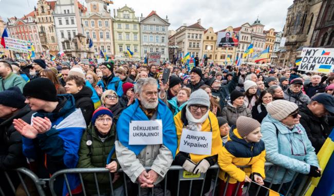 俄罗斯全面入侵乌克兰即将迈入第4年,警方估计今日约有800人来到布拉格旧城广场,参加“共同为乌克兰!”(Společně za Ukrajinu!)集会。