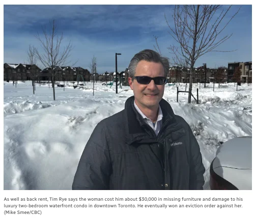 除拖欠房租外,赖伊称该女子还造成其约3万加元的损失,包括家具缺失和房屋损坏。他最终获得了驱逐令。