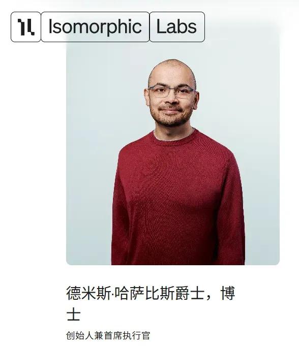 事实上,IsoDDE 被称之为“AlphaFold 4”并非仅仅因为它在功能上和 AlphaFold 有着一脉相承的风格,背后公司 Isomorphic Labs 更是直接由凭借 AlphaFold 获得诺奖的 DeepMind 创始人戴密斯·哈萨比斯(Demis Hassabis)亲自下场担任创始人和 CEO。