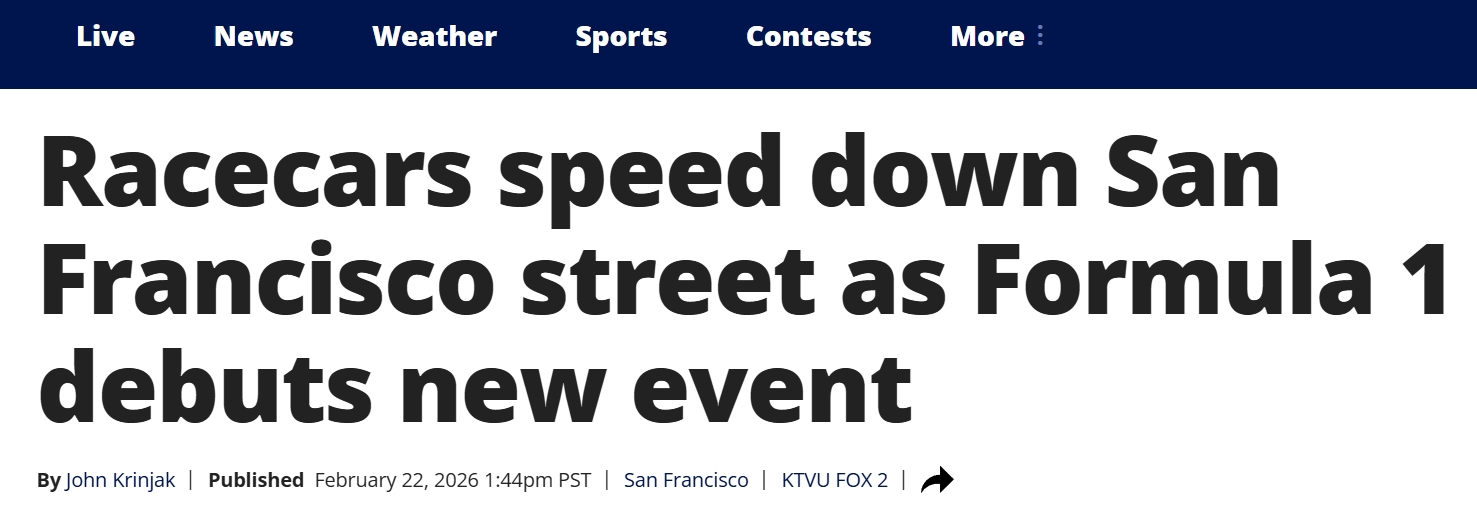 F1首秀旧金山,赛车飞驰引爆全城KTVU