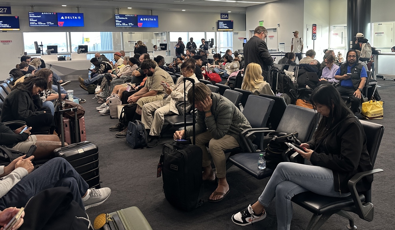 联邦官员近期宣布,TSA PreCheck与Global Entry(全球入境计画)服务暂时调整。图为上次政府停摆时,LAX航班大批取消造成旅客滞留。(记者刘子为/摄影)
