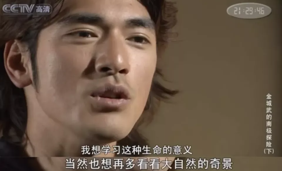金城武曾拍摄过一档南极探险的纪录片,不同于镁光灯下的高冷忧郁,当他置身于大自然时,整个人都充满了“活人感”。