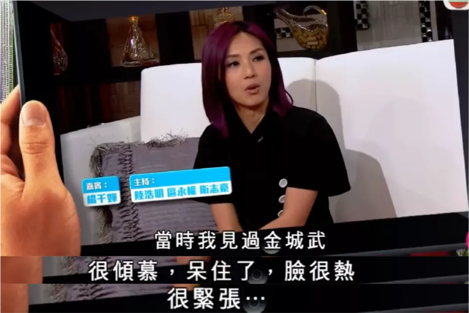 杨千嬅初见金城武时,整个人都直接呆住了,通红着脸站在原地;