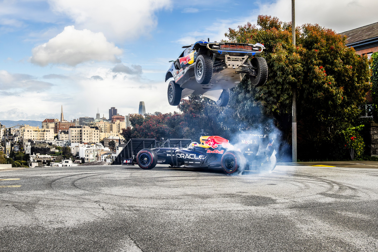 除了角田外,湾区出身的前F1车手Scott Speed、越野赛车手Mitch Guthrie Jr.,以及特技摩托骑士Aaron Colton也同场演出,透过跳跃与高难度技巧展示,让活动更像是一场结合赛车与极限运动的城市秀。
