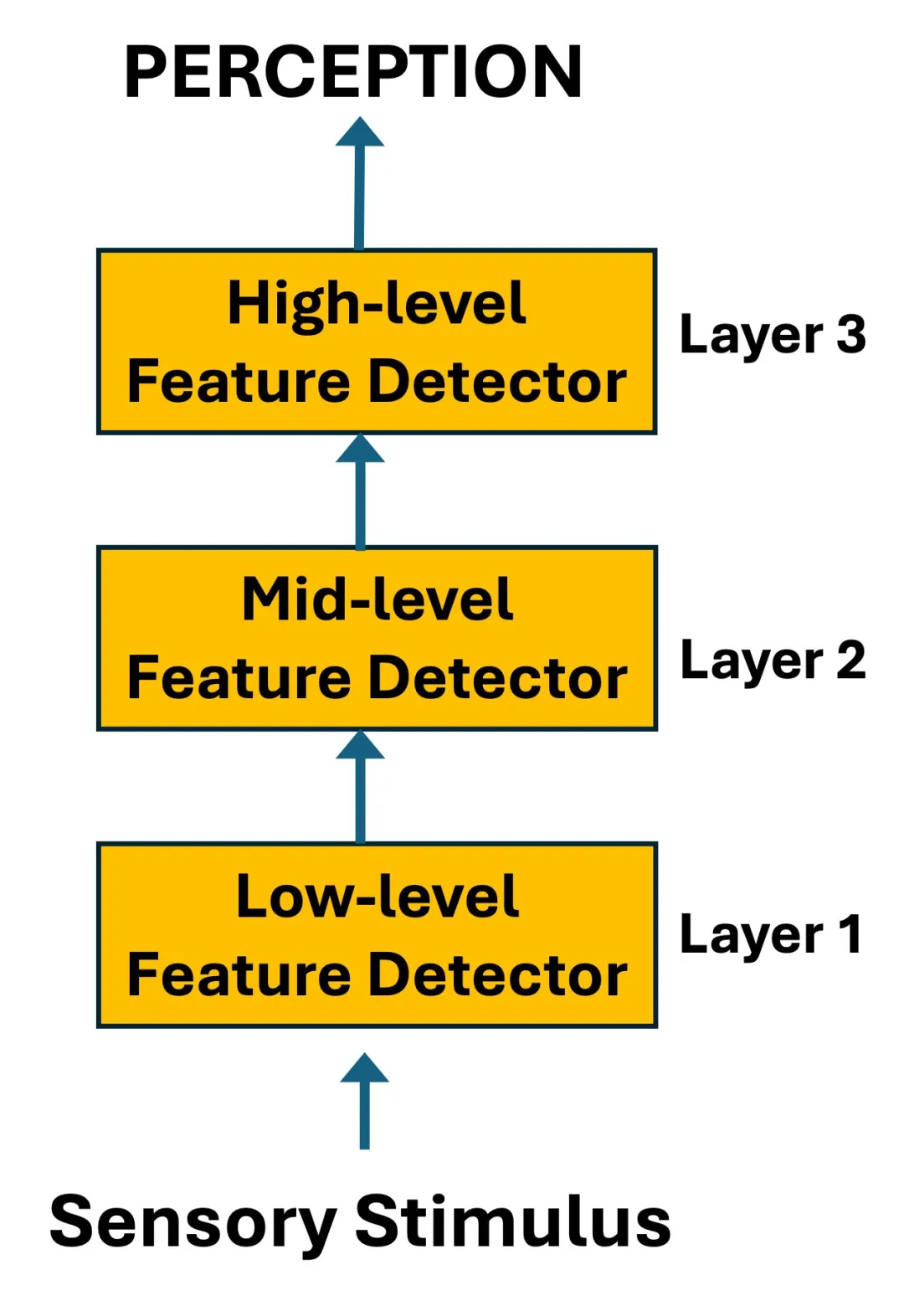 自下而上(bottom-up)的理论认为,大脑从感觉输入开始,逐层提取特征:先识别边缘和线条,再组合成形状和纹理,最终达成高层感知——"这是一个沙坑"。