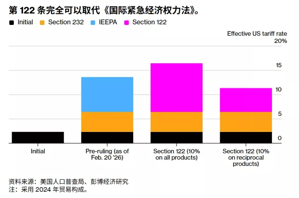 汇丰银行分析,可能的路径是用“122条款”先顶住时间窗口,同时推动301调查完成,之后再切换到差异化税率体系。