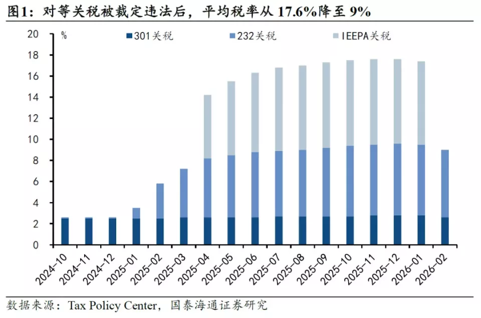 另一方面,全球各国都在盯着关税的新动态。IEEPA失效后,特朗普政府无权上诉,只能执行,因此全球平均税率将从17.6%降至9%。对于中国而言,美国对华关税将立即取消20%(10%的芬太尼关税+10%的对等关税)。而新的基础关税是15%,一减一增,关税总体降低5%。