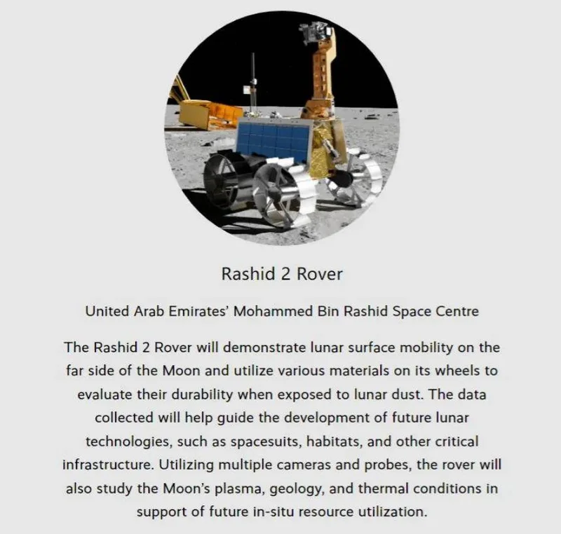 在2023年的时候,美国站出来了,说阿联酋的“拉希德二号”月球车使用了美国的技术,禁止中阿嫦娥七号合作,这让很多人都没有想到的是,美国居然在禁止之后,在1年左右的时间之中保持沉默,以为就这样结束了。