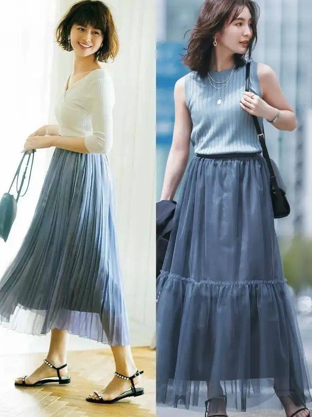 也可以选择白色针织毛衣,雾霾蓝针织无袖上衣,搭配上薄纱的雾霾蓝伞状半身裙,整身穿搭轻盈通透,恰如春风拂面,将减龄气质与温柔氛围感,悄悄揉进每一寸春光里。
