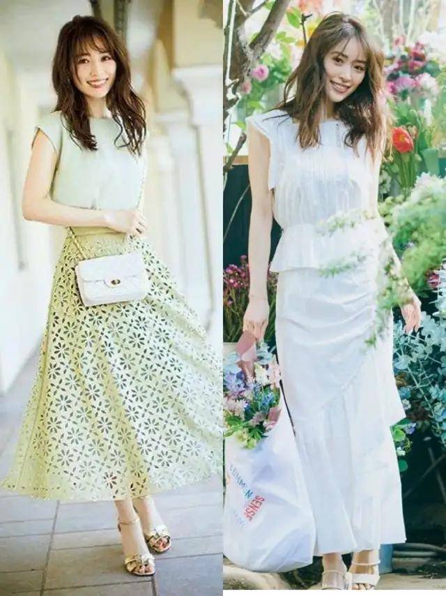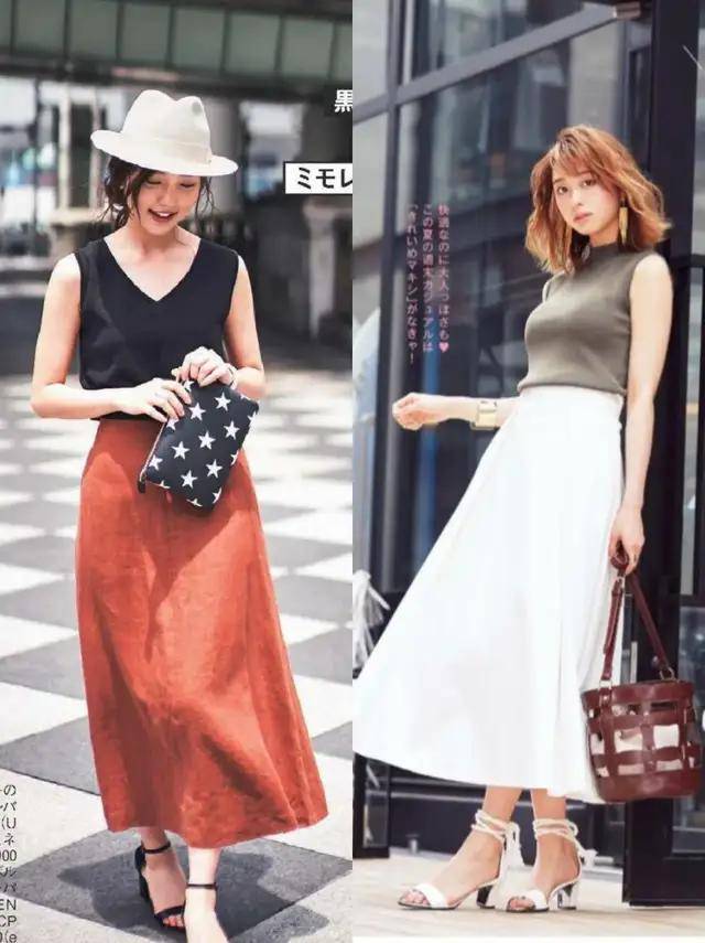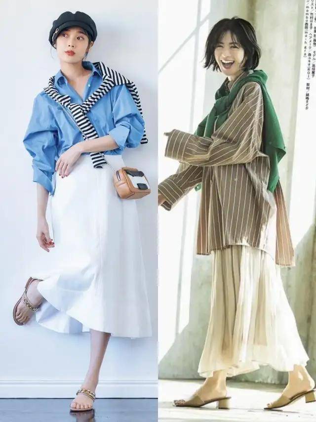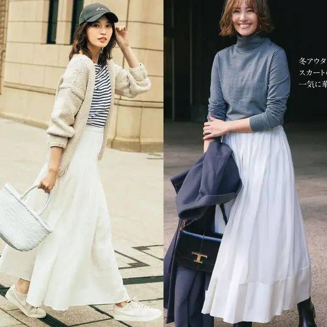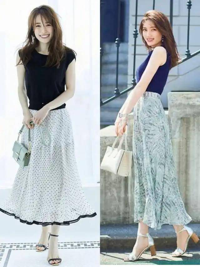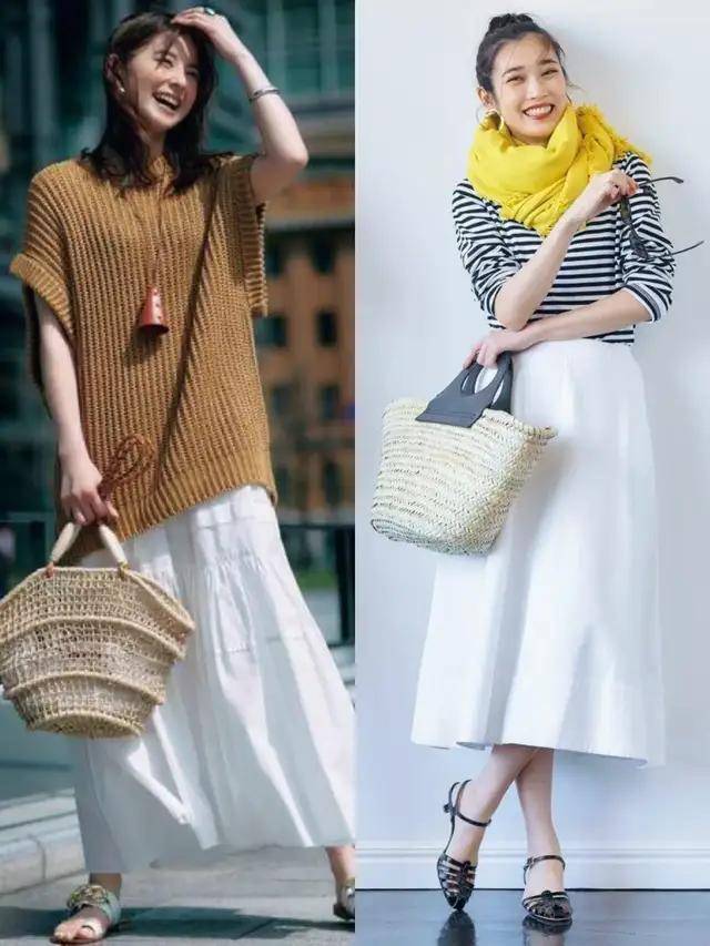 若是咱们偏爱经典耐看的穿衣风格,不妨选择黑白条纹针织上衣,配一条过膝及至脚踝的白色半身裙,裙长恰到好处,不压身形又能温柔修饰胯宽与腿粗的小问题。