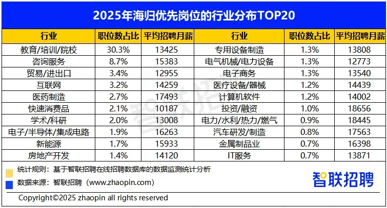 2025年,这些行业依然大规模招聘海归,相关岗位加起来占到海归岗位的四成以上,月薪大多在1.2万到1.6万元之间。