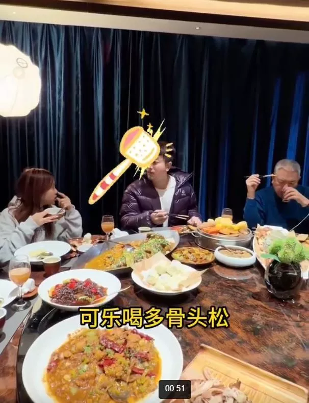 最引人注目的是13岁的甜馨。已出落得亭亭玉立的她坐在爸爸身旁,眉眼与贾乃亮高度相似,被网友感叹“父女共用一张脸”。整场宴席中,甜馨笑容灿烂,埋头猛吃,完全沉浸在美食的乐趣中,展现出自然放松的状态。其间,她更贴心提醒贾乃亮少喝饮料,懂事细节一如往日。与爷爷奶奶的互动也亲密自然,延续了从小被观众熟知的乖巧性格。