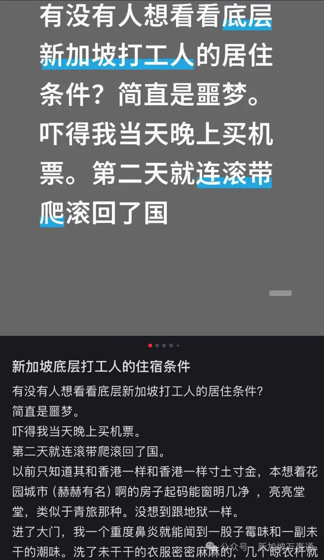 近日,一位中国网友分享了自己在新加坡短暂打工、却被住宿环境“吓到连夜逃回国”的经历,引发不少打工族热议。她说,这段经历“简直是噩梦”。