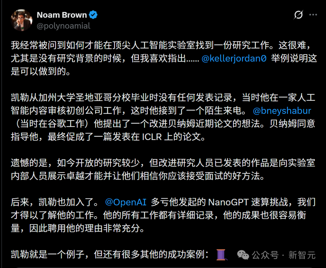 他没博士、没论文,却靠公开改进论文和跑基准测试,直接打动大佬、入职OpenAI!Noam Brown亲证:行动力和开源项目,才是逆袭顶级AI实验室的真正通行证。
