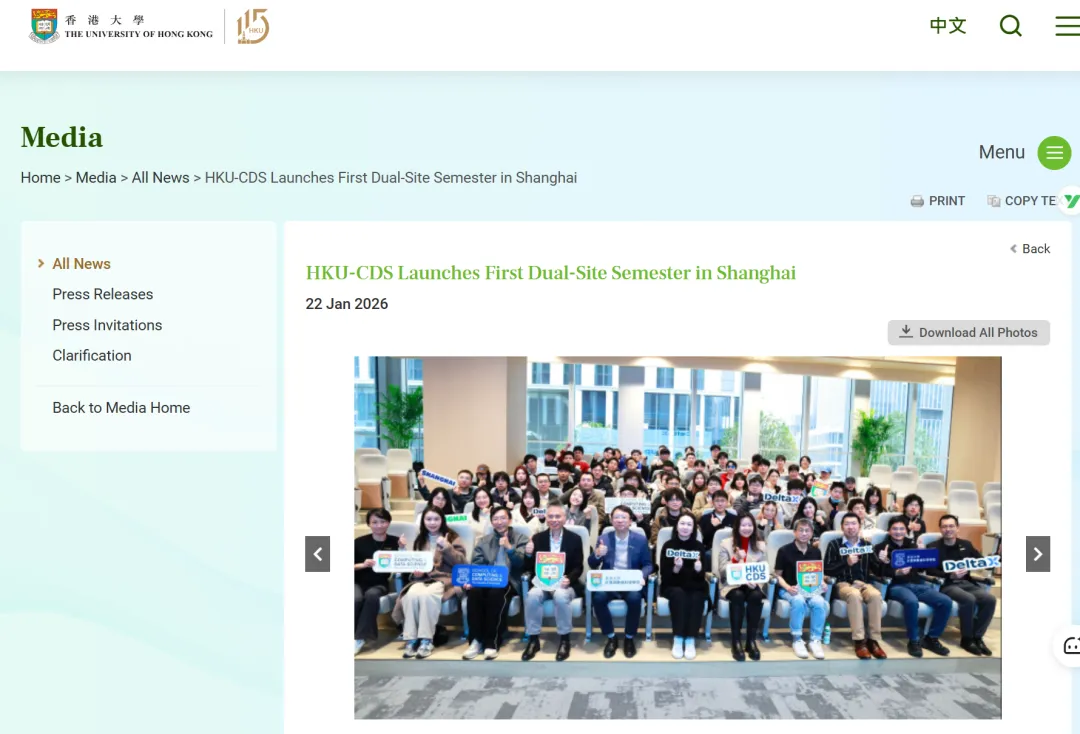 先在港大商学院在2025年12月成立「上海中心」,紧接着1月份,计算机及数据科学学院来到上海张江,开设一个全新分校区,面向本科生和研究生,一路北上,直接把旗子插进上海的核心腹地。
