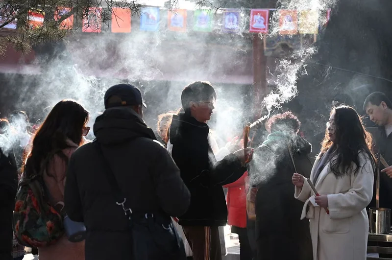 人们在北京雍和宫烧香祈福 资料图:法新社