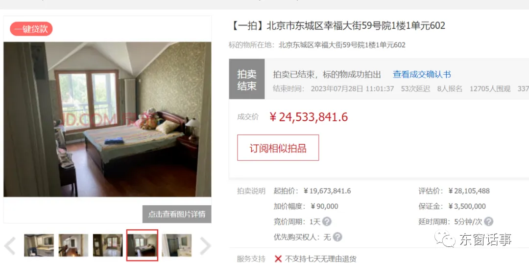 房子4室2厅,总建筑面积达236.07平方米,评估价约2811万元,起拍价为1967.38万元,最终成交价为2453.38万元。意外的是,